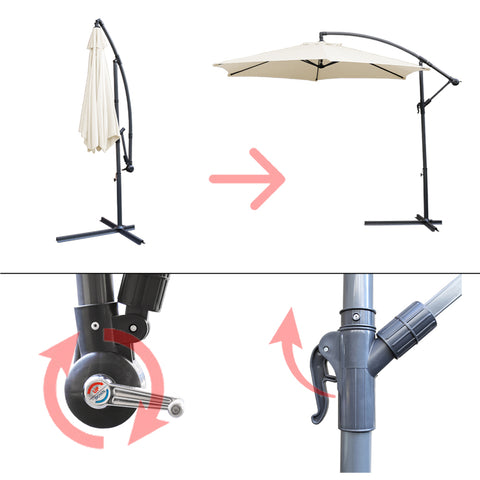 ▲ Neigungswinkel stufenlos verstellbar- Freischwebender Schirm mit 8 Streben inkl. Handkurbel für leichtes Aufspannen Stufenlos in verschiedene Neigungswinkel einstellbar, bietet kontinuierliche Abdeckung auch außerhalb des Tages
