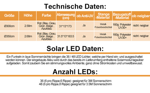5.Die Solar LED muss selbst am Sonnenschirm installiert werden